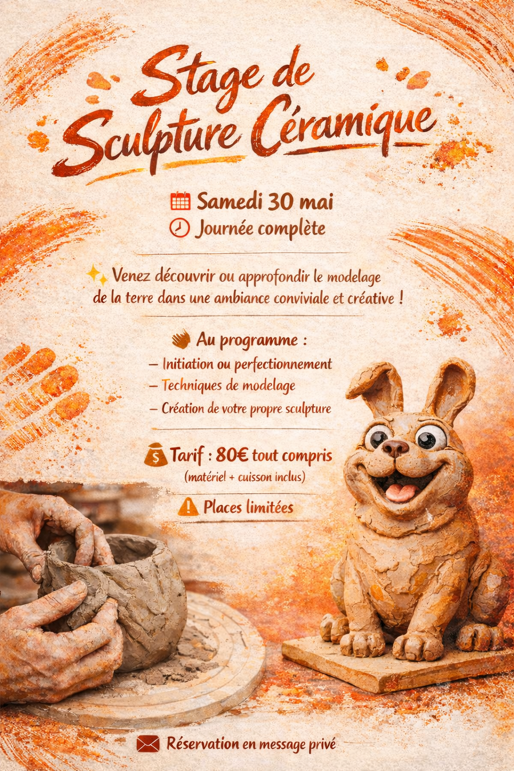 prochain stage modelage le 30 mai 2026 13 avril 202613 avril 2026 Venez profiter d’une journée créative dans mon atelier à Graulhet. Ambiance conviviale assurée. Ce stage convient aux débutants comme aux confirmés. Aucun sujet imposé, je vous accompagnerai dans votre projet.